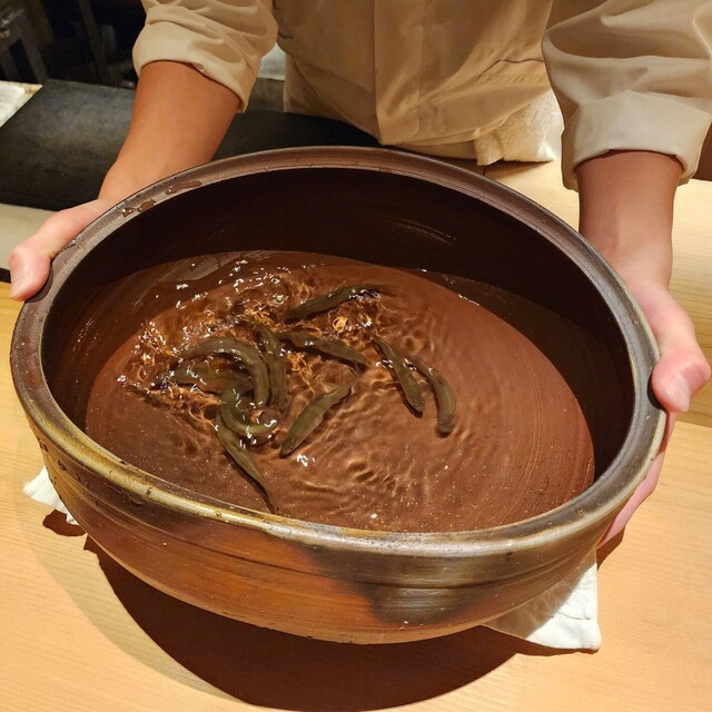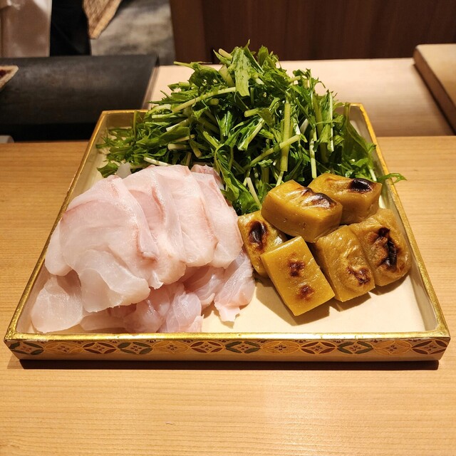 近代建築が残り、美しい町並みを誇る名古屋・橦木町エリア。ここに2022年1月に開業するや、たちまち人気店の仲間入りを果たしたのが、「橦木町 しみず」だ。店主の清水陽介氏は、大阪ミナミのミシュラン二つ星の日本料理店「本湖月」で11年、岐阜市の日本料理の名店「たか田八祥」で6年の研鑽を積み、満を持して独立。夏なら鮎、秋なら松茸など、故郷・岐阜の旬味を活かしたおまかせコースで評判を呼んでいる。