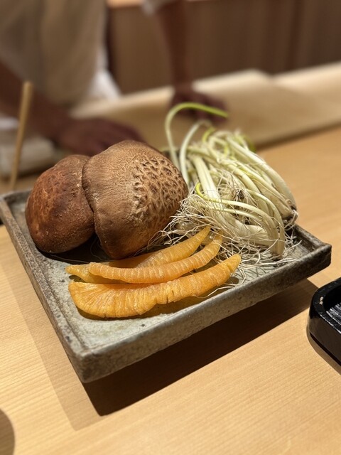 真鴨(岐阜、新潟) お椀で岐阜はメス新潟はオスの食べ比べ。合わせたつくねとネギは(雪の中のあさつきと大阪なんばネギ)
