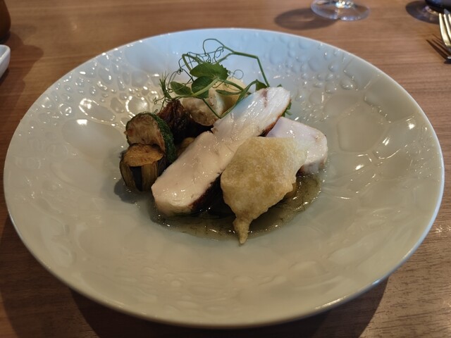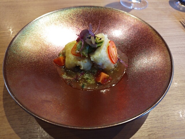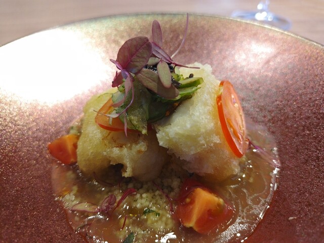 塩麹で味つけてベニエ。そして穴子出汁のソース。