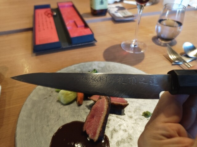 ご厚意で特注のナイフで切らせてくれる貴重な体験。