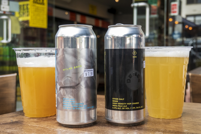 OTHER HALFの"MYLAR BAGS DOUBLE DRY HOPPED IMPERIAL INDIA PALE ALE"(左、7.59ドル)と"HIGH-DENSITY HOP CHARGE"(右、7.59ドル)。