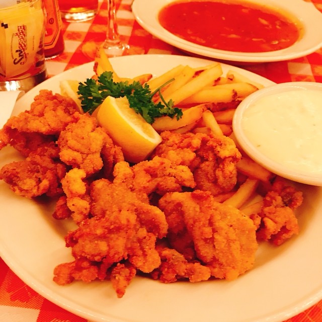そう思いながら、何年かぶりかの紅白二種類の皿に匙を突っ込むと、どちらもしばらく食わないうちに随分、粉の含有量が増え、こりゃ冷えたら、給食のカレーみたいに表面にヒビが入るんじゃね? というほどにモッタリとしている事にタマゲ、それでも手首をエイヤッ! と返し、掬い上げてみると、具のアサリがシジミの親分くらいに極小であることに二度タマゲ、口に含むと「思った通り」舌の上でこだわり、キレが悪いさまにもはやニガワライを浮かべるほかなく、ついで生ガキ嫌いのスタッフ向けに頼んだカキフライにフォークを伸ばすと、パン粉がドイツのシュニッツェルに使う「パニアミール」のように細かく、妙にかっちりと揚がっているさまに、ん? これとりからじゃね? と繰り返し「じゃね? 」を使ってしまう自らのアタマワルさに辟易としながらも口に入れてみると、熱が通り過ぎ、牡蠣の香りも何もあったモンじゃないさまにこちらの体まで硬直し、あんりまあ、昔ウマイウマイと食った記憶は、脳内で思い出が美化されてたのかしらん? と御菜の出来栄えよりも、じぶんの頭蓋骨の中身の良否が心配にならない、事もない。