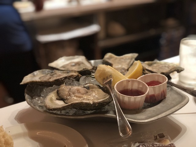 既に、2時を回っていたので、ウエイティングもなく、予約なしですんなり席に案内される。シェル牡蠣は、色々と種類があるが、よくわからないので、リストの最上段のモノをオーダーした。クラムチャウダーは一つをオーダーすれば2-3人でシェアできるボリュームだ。そのほかにシュリンプをオーダーして、シェアして食べた。