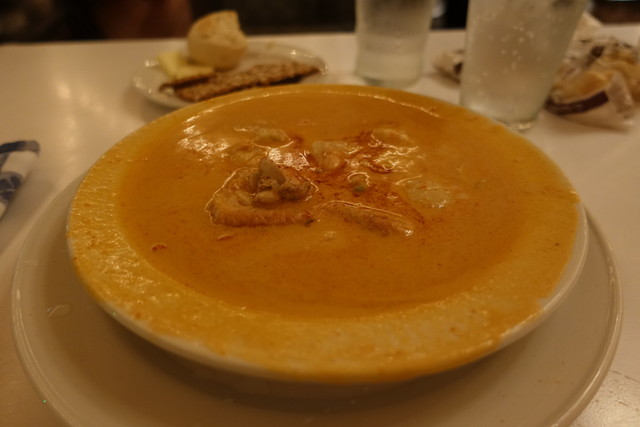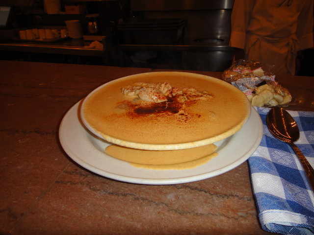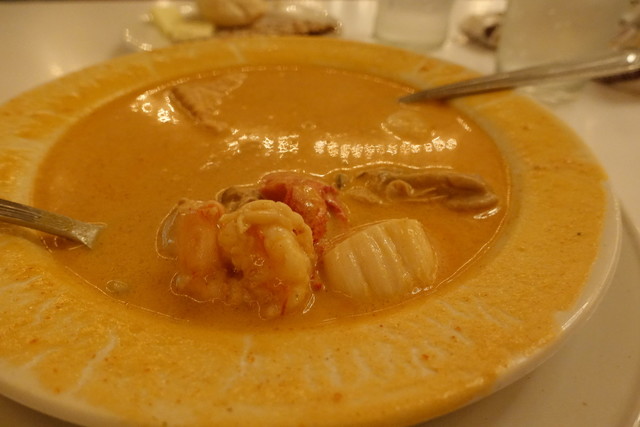 これは牡蠣やホタテ、ロブスター等の海の幸を牛乳とある種の香辛料で煮込んだものである。その上にパンが乗っている物なのだ。