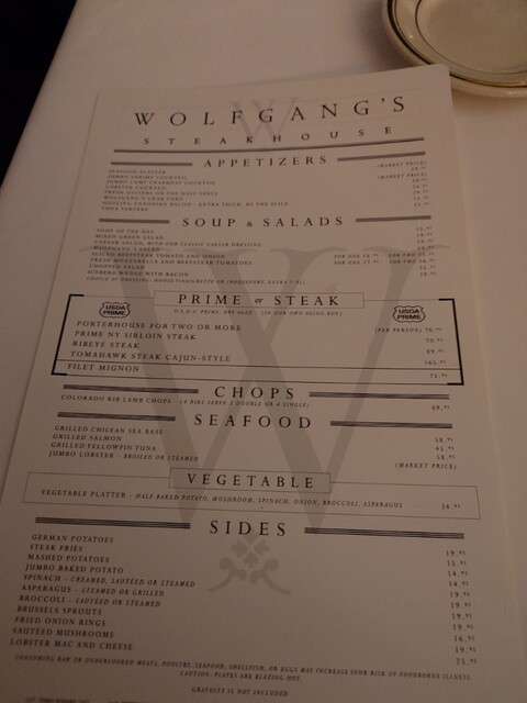 5年ぶりに見るメニューは依然と少々変わっていた。ポーターハウスは1人前70ドルとなっていた。かつては2人前からで150ドルスタートだった。