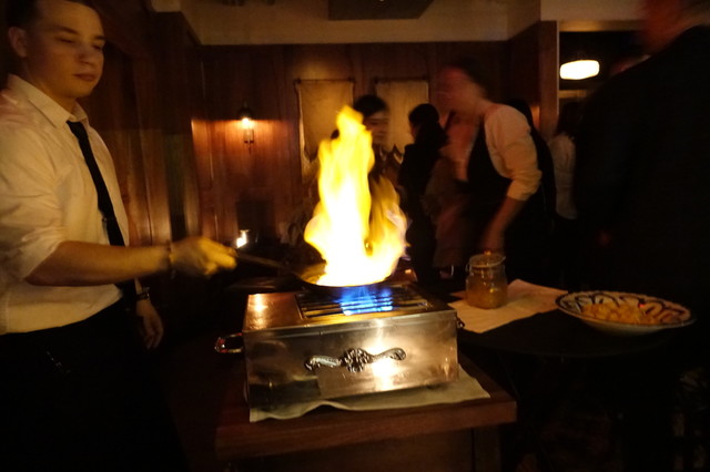 ショートパスタは席の目の前でスタッフの方がフライパンで焼いてフランベしてくれた。そしてテーブルの上のショートパスタの上にかけて頂いた。やはりこちらのロブスターはしっかりとして身が締まっておりとても美味しかった。塩味がきついのはお酒のことをメインに考えているからなのだろう。