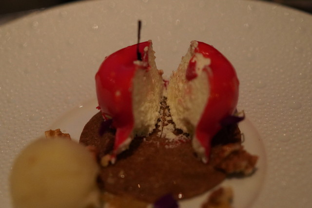 今回は食後にお邪魔したのでサラダとチーズケーキを頂いた。サラダはエンダイブ、そしてチーズケーキは「Big Apple」であった。ビッグアップルというのはニューヨークの別名で、チーズケーキ自体も赤い飴にコーティングされて、リンゴの形をしていた。