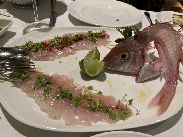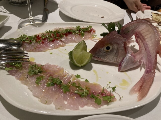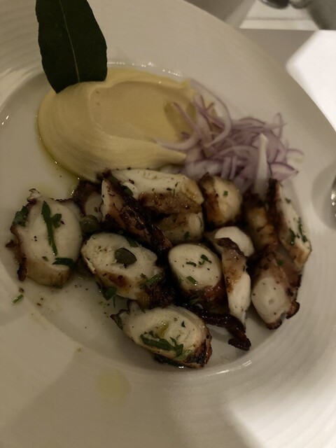 ギリシャ料理、とっても美味しかったです。おさかなが展示してあり、そこから食べたいおさかなを選ぶ。生魚もたべられます。タイのお刺身をいただきました。ギリシャのタイです。それからホタテのあげもの。さらにトマトソースの大きなエビが入ったパスタも最高でした。ワインもシャルドネ、 カベルネ ソービニヨン ブランも最高においしかったです。それからタコ オクトパスもとてもおいしかった。どれも新鮮な地中海の魚介類で、生魚もレモンをしぼり、とてもおいしくいただけました。ギリシャサラダもとてもおいしかったですね