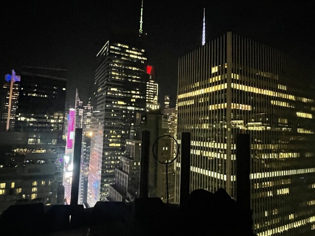 一人用のテーブルが偶然一つ空いたのでそこでギネスを飲みながら夜のマンハッタンの夜景を満喫した。