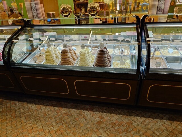 ランチを食べた後、この辺りを徘徊していたら見つけたジェラート屋さんである。金ぴかの店内が何とも魅力的で思わず中に入ってしまった。