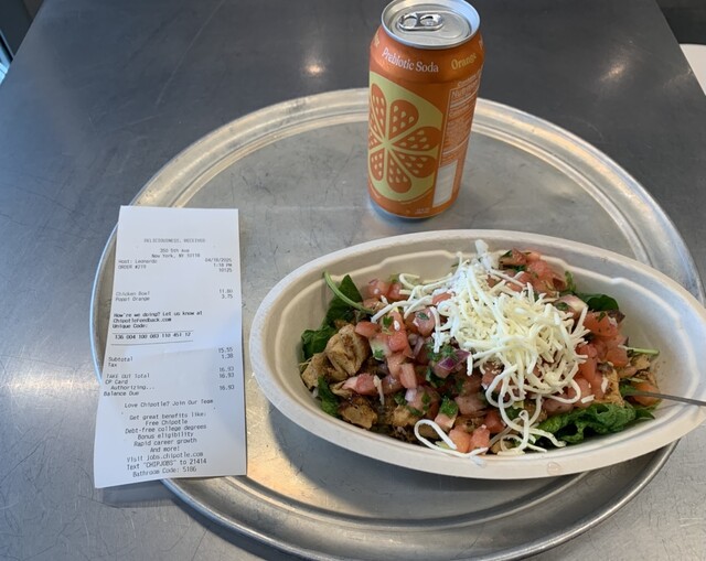 13時半過ぎ、5番街エンパイアステイトビル1階のメキシカンファーストフード店、マンハッタンだけでも店舗10店以上あります。色々な組み合わせで盛ることできて、当地にしては安価なので人気あるみたいです。お...