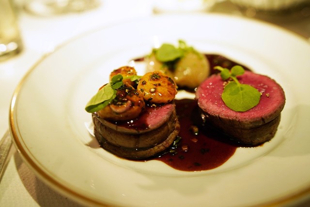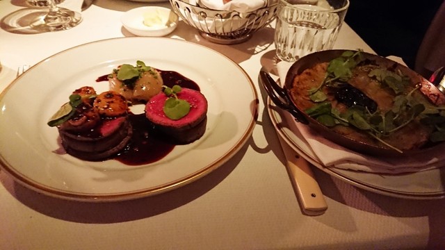 メインは牛がかぶったが、牛のフィレ肉のステーキにした。ステーキといってもNYスタイルの大きい物でなく、フレンチスタイルの小さめのものであった。とっても柔らかくてNYのものとは思えない・・・とても繊細な味がするローストであった。サイドディッシュにはポテトの薄切りにクリームを入れてオーブンで焼いたものであった。ポテトと牛肉って相性ばっちりだよね~~