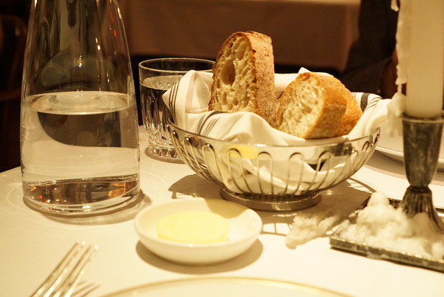 席に案内されると、各テーブルには背の高い蝋燭があり、すっごくおしゃれなのですが、テーブルの間隔が狭いため、勝手に引火したらどうしよう・・・なんてハラハラしてしまいました^^;