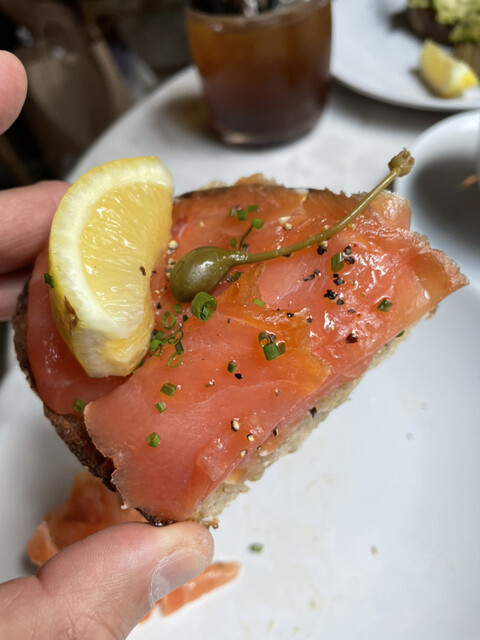 • 1 Champers Social Club - 料理写真:『SALMON TOAST $25,0』 『KINDRA'S AVOCADO TOAST $21,0』 『AMERICANO $4,0』 『ICED AMERICANO $4,5』 ※チップ18~25%別途