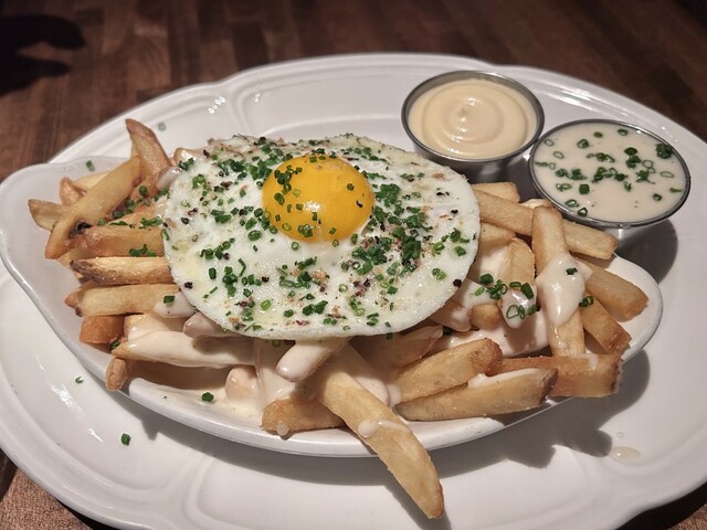 カリカリフライドポテト: モルネーソース、目玉焼き、ガーリックアイオリ添え