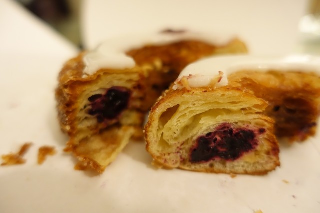 が、味覚としてはちょっとクドい。面白くはありますが、普通のクロワッサンのほうが美味しく感じます。また、フレーバーがしょっちゅう変わり、この日のそれはブルーベリー味だったのですが、これも大味で余計な工夫のような気がしました。