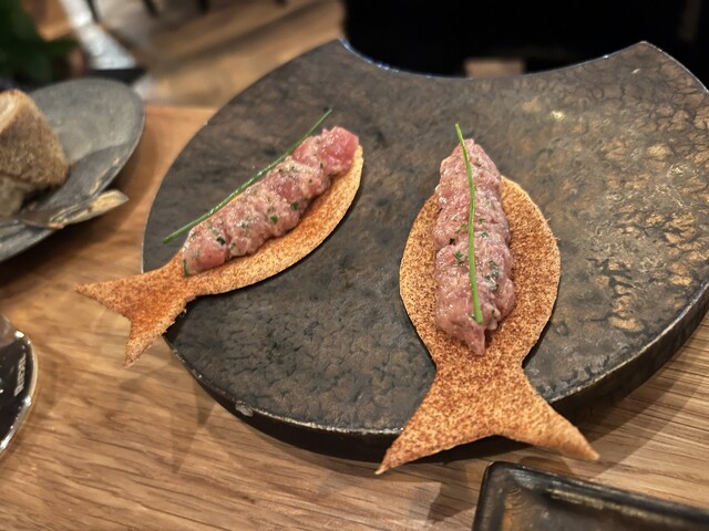 次にオイスターはポン酢が泡になってますが、ここまでかなり和食の影響を受けた皿が続きます。