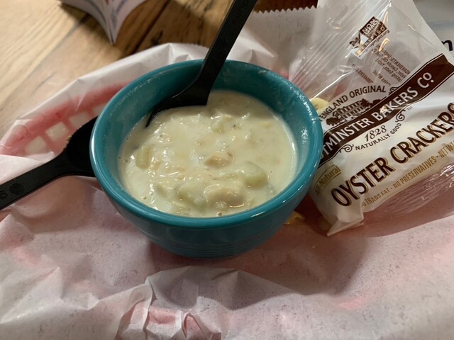 クラムチャウダーは多少塩っ辛い。ポテトチップスのよう...
