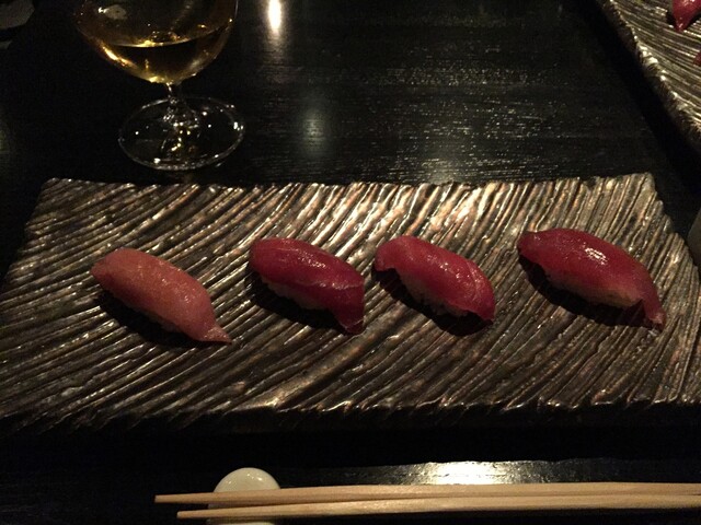 グリニッジビレッジ、一本入った住宅街の人気鮨店、店主はすきやばし次郎修行の苦労人で昼夜無休、ワシントンにも支店あるしで、日曜ランチには店主おらず、カウンターではありますが、ラウンジカウンターなので握り...