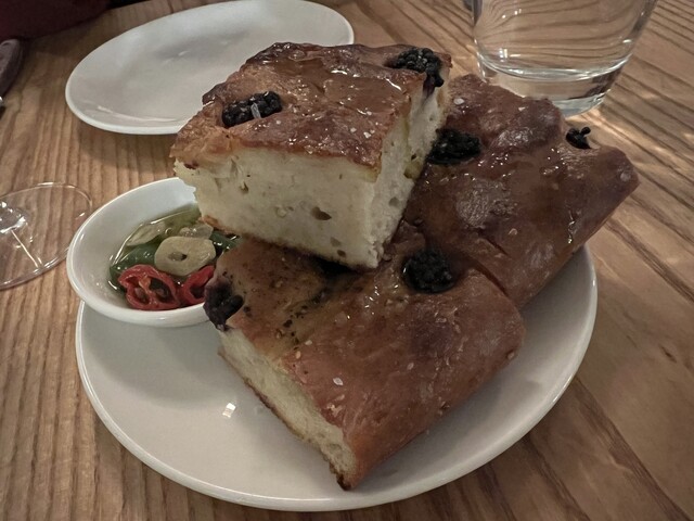 フォカッチャはハウスメイドでガーリックオリーブオイルで美味しいです。