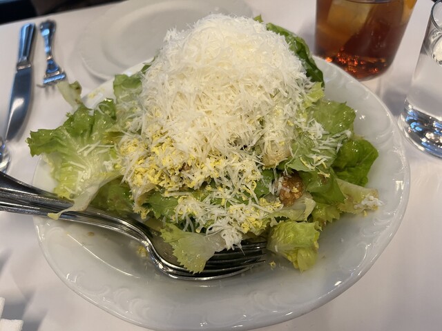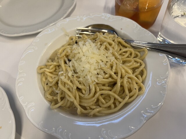 サラダとシグネチャーのCacio e pepeとパルメジャンとプロシュートのパスタを注文。どちらも手打ちのモチモチとした麺で美味しいです。