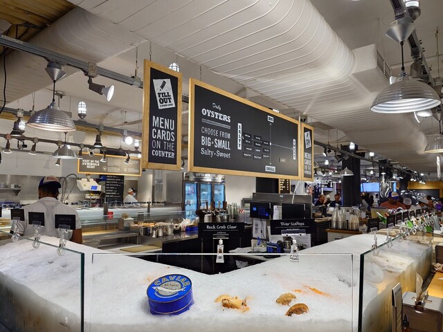 Chelsea Marketのメイン通路に面したLobster Placeは、1974年創業の老舗シーフードマーケット&カジュアルレストラン。