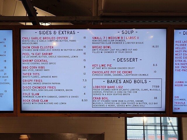 ・Kitchen:サンドウィッチ・チャウダー・ロブスター・ボイルドシーフードなど。