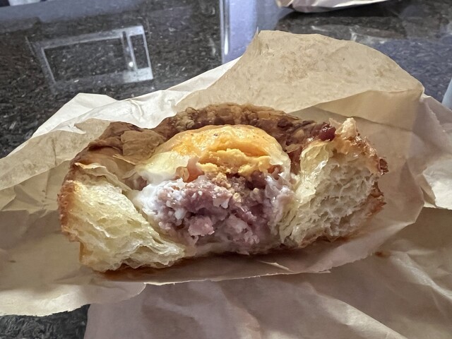 クロワッサン、ハムとチーズのクロワッサン、Savoyにパンオショコラを購入。