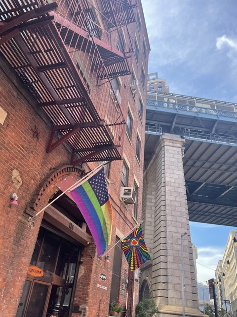 マンハッタン橋の袂にある古いレンガ造りの倉庫を改造した店舗は雰...