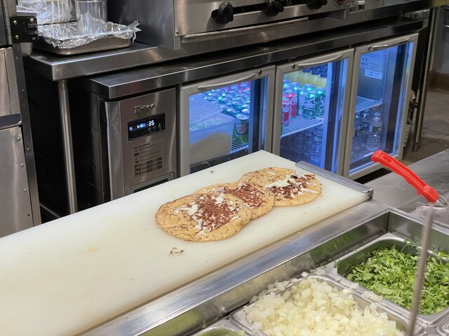 私の頼んだQuesatacos 3枚セット 11.5ドル。左から Crispy Fish、Smoked chicken、Carne Asada。