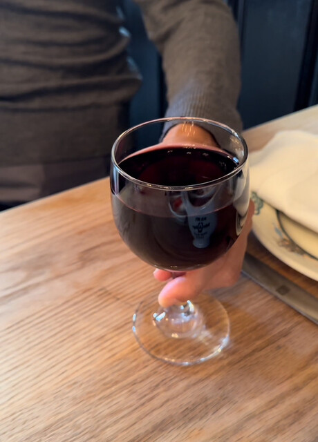 事前の調査でオニオン&トマトとクリームスピナッチ及びステーキを頼むと決めていたのでそのままお願いしました。ワインは赤のグラスワイン Pinot Noirとしました。