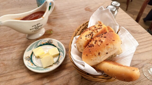 人気店です。4人で訪問します。キッチンと繋がったメインダイニングのテーブル席に案内されます。使込んで磨かれたオークのテーブルと椅子。ワサワサ騒がしいけど、クラシックで不思議と落ち着いた雰囲気です。Sa...