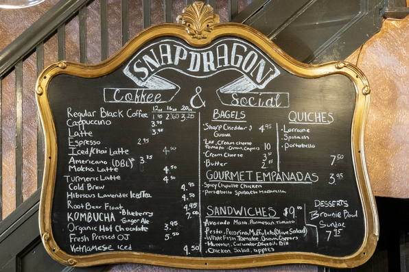 ちょっとヤバめな私の逗留エリアにありながら、綺麗でお洒落なカフェ。それはまるで荒野に咲く一輪のキンギョソウ (^^)ーーsnapdragonはキンギョソウの意。