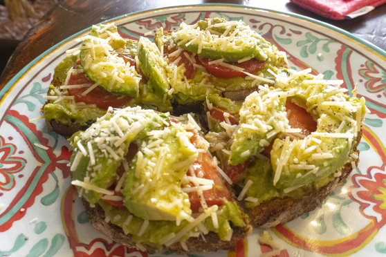 ●アボカド・パルメザンチーズ・トマトサンド(9ドル)。