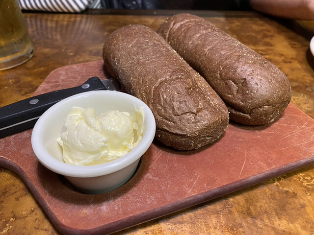 お通しのパンは温かく、軽く焼き目もあり美味い。