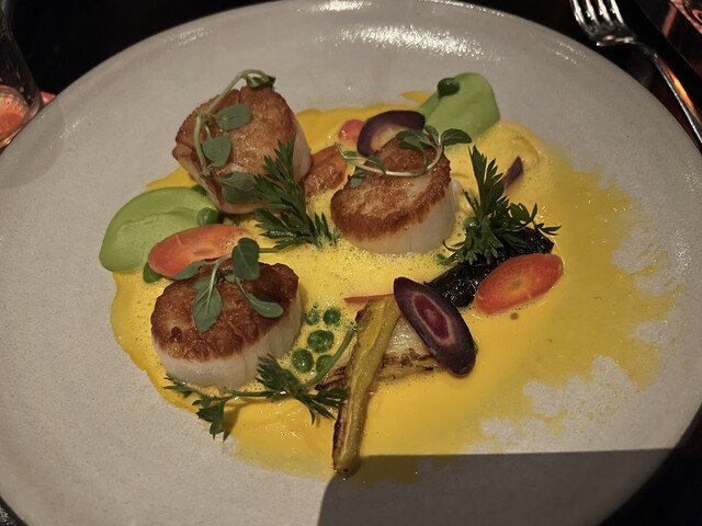 前菜でハマチ、自分がscallop, 相方がsea bassを注文。