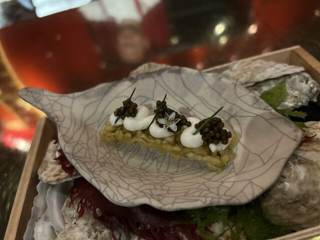 Cosmopolitan HotelのJoseのお店Jaleoの裏にカーテンで仕切られた8席だけのスペシャルシートがe by Jose Andresです。スペインタパスの小皿で約20コースで、テンポ良くサーブされます。