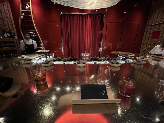 Cosmopolitan HotelのJoseのお店Jaleoの裏にカーテンで仕切られた8席だけのスペシャルシートがe by Jose Andresです。スペインタパスの小皿で約20コースで、テンポ良...