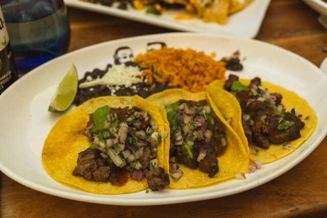 じゃーん。細かく切られたお肉がのっかっています。後ろにはご飯となんだろう、あずきの甘くないやつみたいなw豆ですね。あんまり馴染みがない豆wタコスはしっかり美味しいです。リアルメキシカンとはいったものですがかなり本格的。
