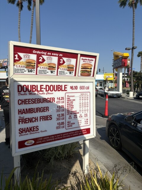 『Cheese Burger Animal $4.25』 『French Fries $2.35』 『Soft Drink M $2.30』