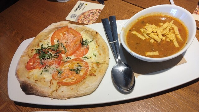 ランチセットがあり、ピザ、パスタなどとサラダかスープを組み合わせる感じ
