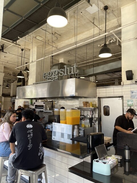 ロサンゼルスに来ています。グランドセントラルマーケットの中でとても人気のあるお店ということで行ってみました。日曜日に行ってみたところ、大行列だったので諦めて、翌日の月曜日に行ってみたところ、待っている人は誰もおらず、注文してカウンター席でのんびりとすることができました。カウンターからは調理をしているのがよく見えるので、見てるだけでも面白いです。