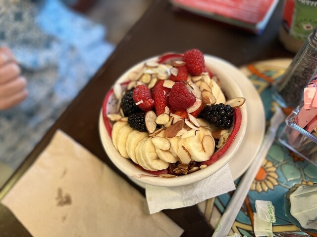 アイスラテとパルマハムとチーズのパニーニ、相方がアサイーボウルを...