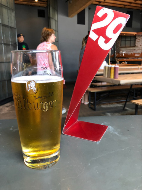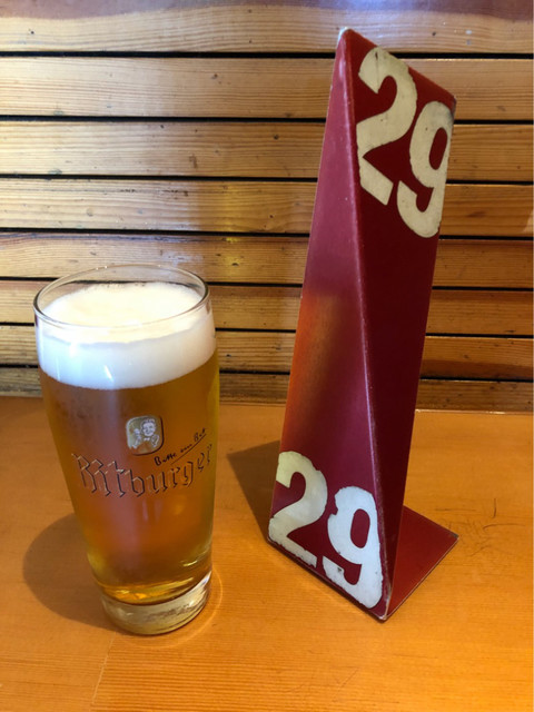 サーバーから注いでくれた生ビールと、番号札を受け取ります。
