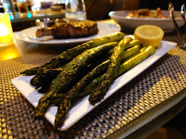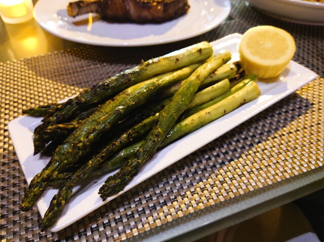 Classic Side. Roasted to fragrant tenderness, this generous side of asparagus was the ideal complement to the juicy steak. The sweet, earthy flavors of the asparagus paired beautifully with the rich, savory steak. A squeeze of fresh lemon added a bright, citrusy note that cut through the richness.
