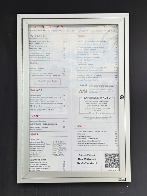 ドライエイジングビーフを使用したステーキと美味しいサイドディッシュを引き立てる行き届いたサービスを提供するスタッフが揃っており、サンタモニカの特別な夜に最適なスポットとなっている。価格はやや高めかもしれないが、全体的な体験は間違いなくその価値あり。