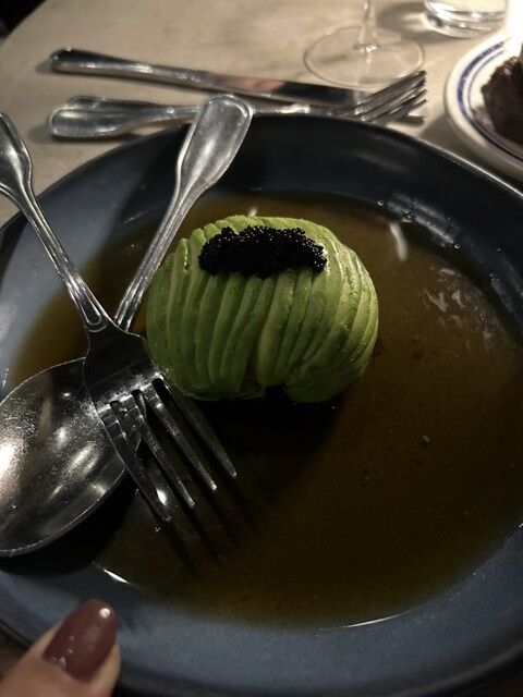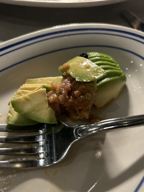 ツナアボカドは丸々アボカドの中にスパイシーツナが入っていて黒トビコがトッピングされています。
