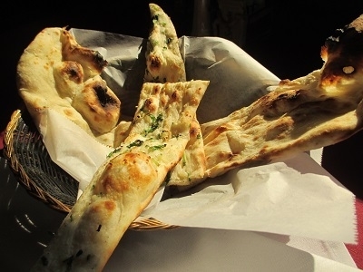 焼きたてガーリックナンがサーブされ、シアワセ♪