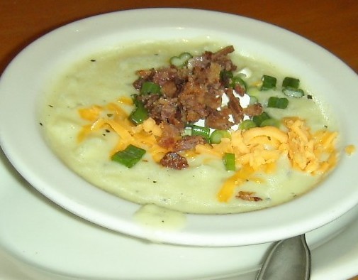 ホワイトシチューにベーコン、チェダーチーズ、サワークリームをトッピングしたような感じで、多少塩加減が強いのだが、このポテトスープが実にうまいのである!!