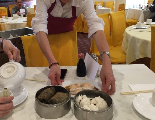 かつては日本でもワゴンで点心がテーブルまで運ばれる同様の香港スタイルの店があったが、今はほとんど無い・・・